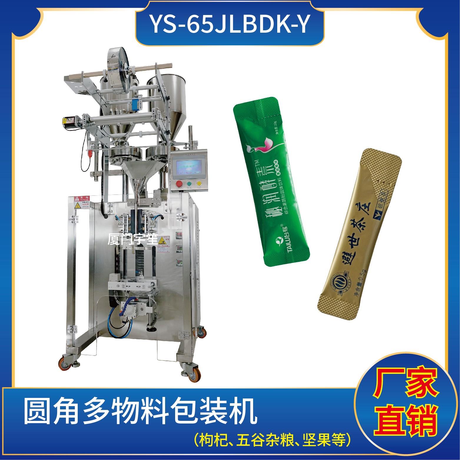YP-65JLBDK-Y 圓角顆粒多物料包裝機特 點 1、適用于食品、醫(yī)藥、化工、化妝品行業(yè)中顆粒物品的計量包裝。2、可自動完成制袋、計量、下料、封合、分切、計數(shù)、且可根據(jù)客戶要求配置打印批號等功能。3、觸摸屏操作,PLC 控制,驅動步進電機控制袋長,性能穩(wěn)定、調(diào)整方便、檢測準確。智能式溫控儀,PID調(diào)節(jié),保證將溫度的誤…