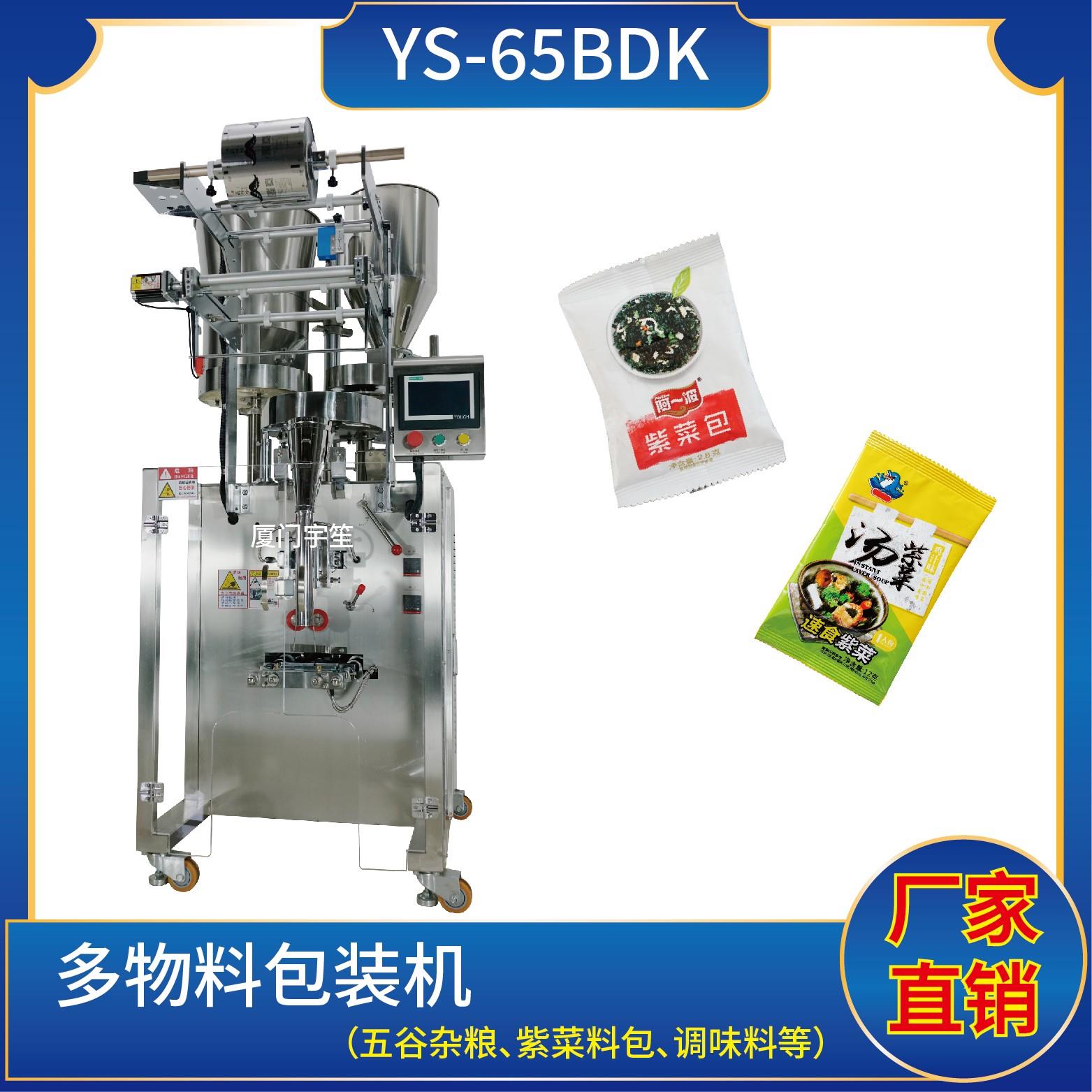 YP-65BDK 紫菜料包包裝機特 點 1、適用于食品、醫(yī)藥、化工、化妝品行業(yè)中顆粒、粉劑、液體、醬料等物品的組合計量包裝。2、可自動完成制袋、計量、下料、封合、分切、計數(shù)、且可根據(jù)客戶要求配置打印批號等功能。3、觸摸屏操作,PLC 控制,驅動步進電機控制袋長,性能穩(wěn)定、調(diào)整方便、檢測準確。智能式溫控儀,PID調(diào)節(jié),…