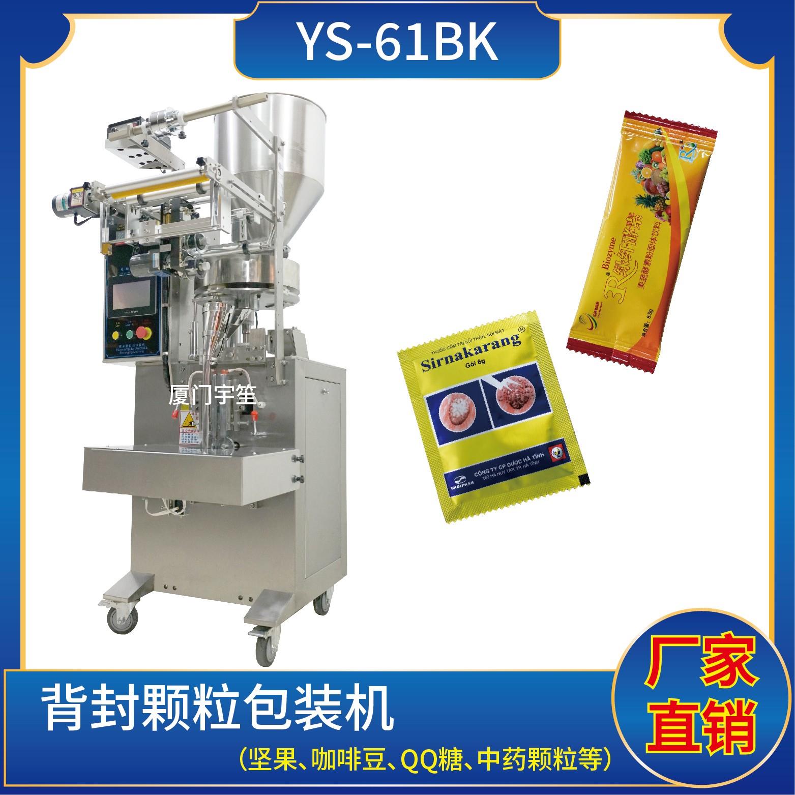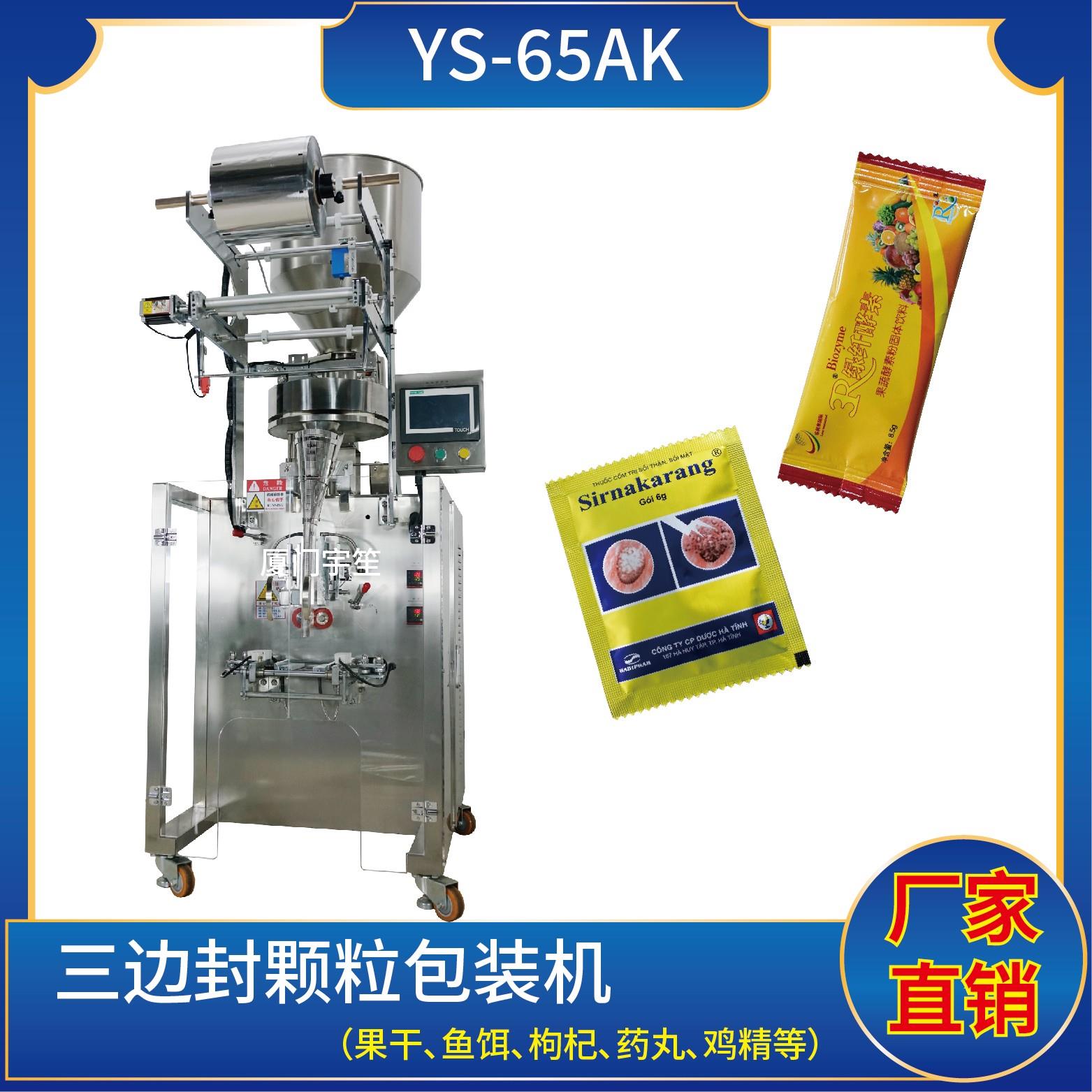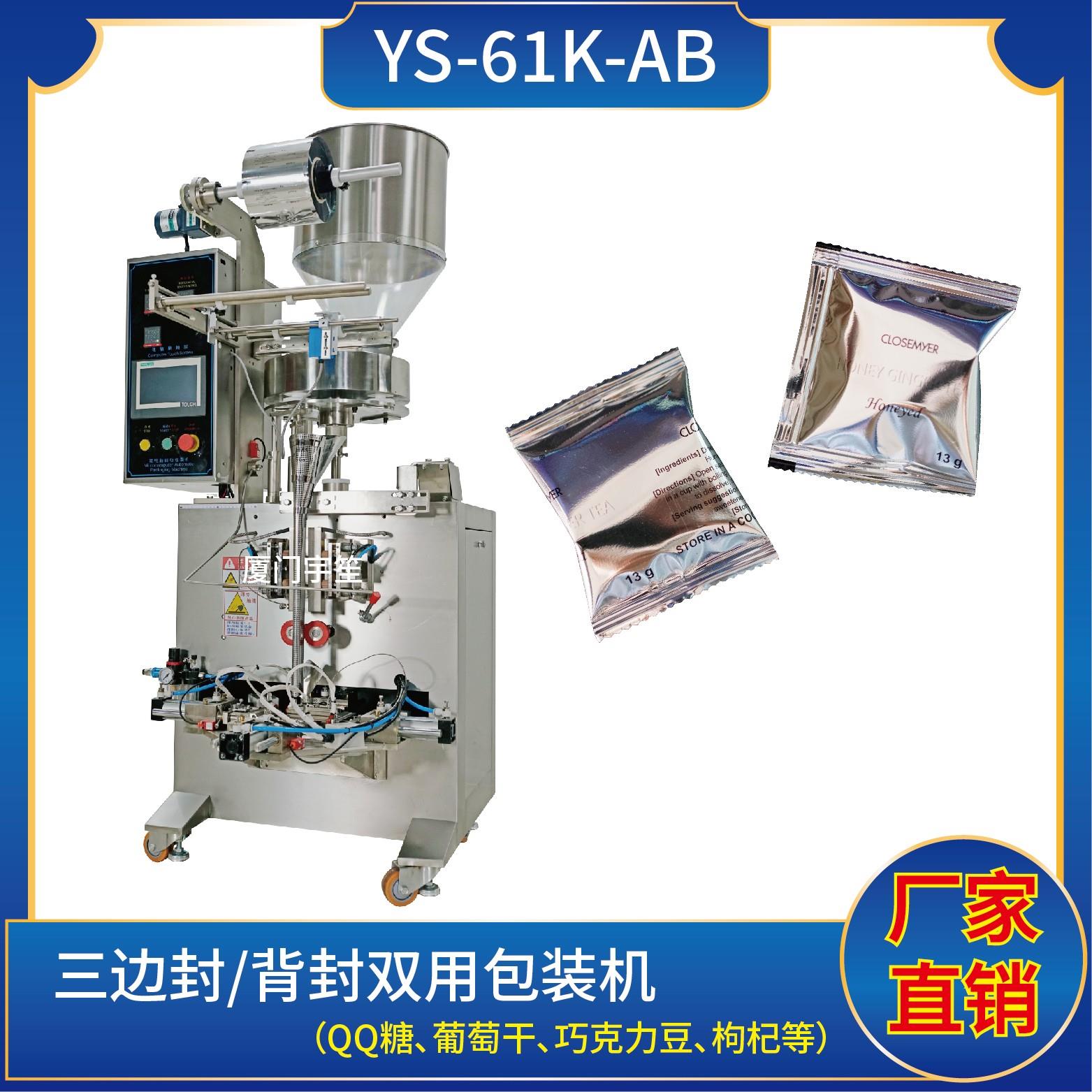 YS-61K-AB 三邊封/背封雙用包裝機特點1、適用于食品、醫(yī)藥、化工、化妝品行業(yè)中顆粒物品的計量包裝。2、可自動完成制袋、計量、下料、封合、分切、計數(shù)、且可根據(jù)客戶要求配置打印批號等功能。3、觸摸屏操作,PLC 控制,驅動步進電機控制袋長,性能穩(wěn)定、調(diào)整方便、檢測準確。智能式溫控儀,PID調(diào)節(jié),保證將溫度的誤差范圍…