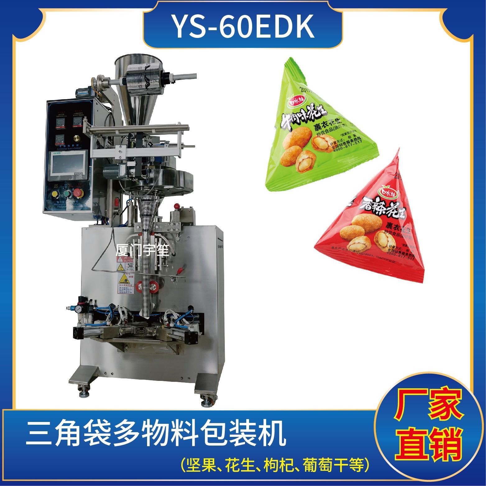 YP-61EDK 三角袋多物料包裝機特點1、適用于食品、醫(yī)藥、化工、化妝品行業(yè)中顆粒物品的計量包裝。2、可自動完成制袋、計量、下料、封合、分切、計數(shù)、且可根據(jù)客戶要求配置打印批號等功能。3、觸摸屏操作,PLC 控制,驅動步進電機控制袋長,性能穩(wěn)定、調(diào)整方便、檢測準確。智能式溫控儀,PID調(diào)節(jié),保證將溫度的誤差范圍控…